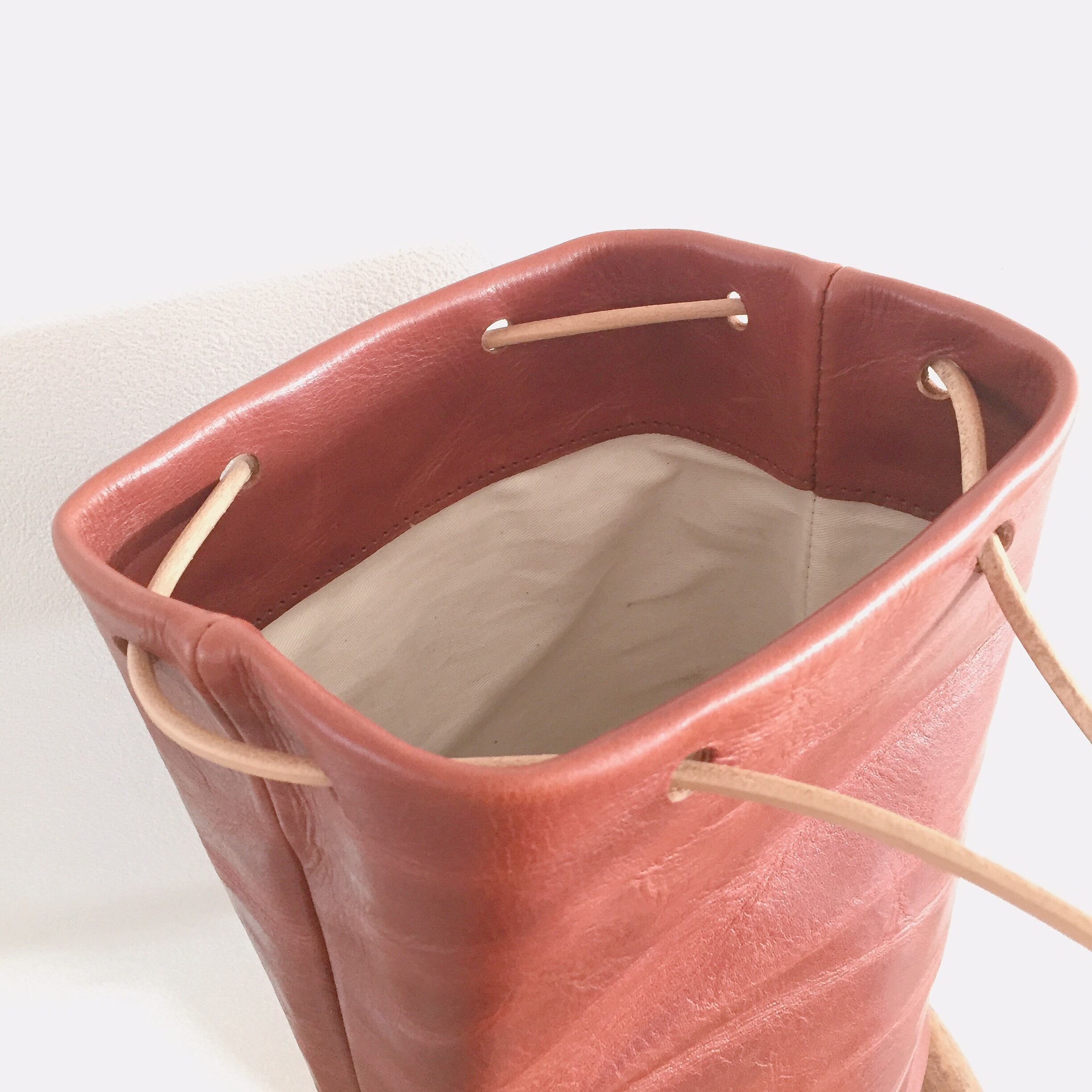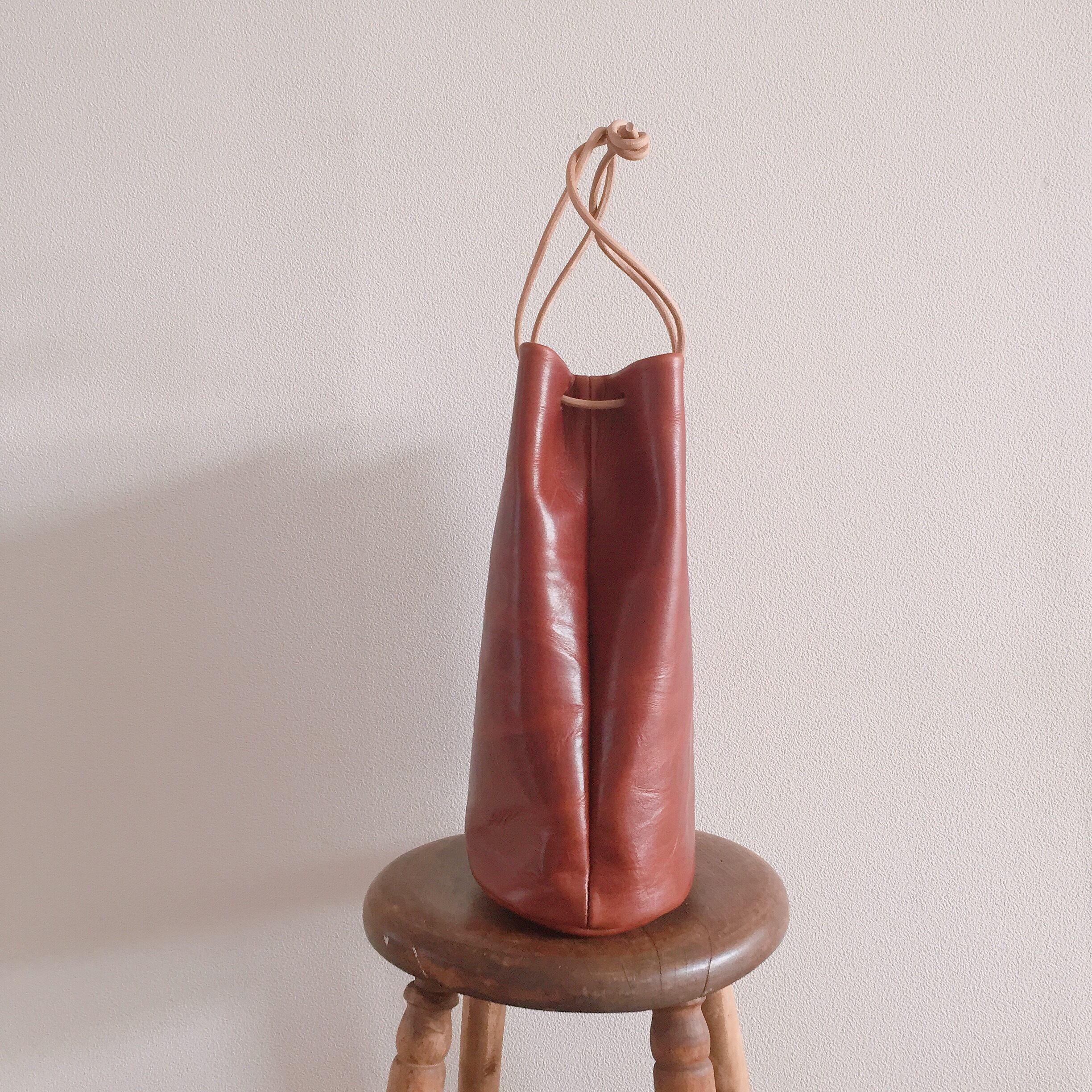 レザーで巾着バッグ