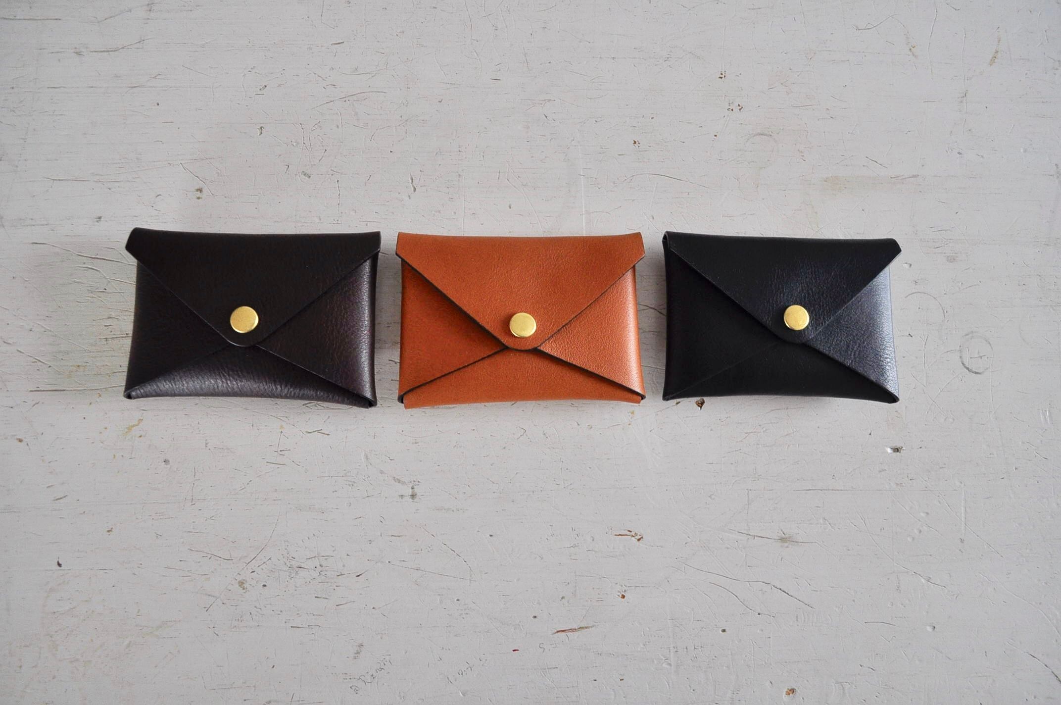 マチなし小さなレター型の名刺入れです。ホンモノのレター型封筒のように貼り合せた革を折り紙のように折り、留め金具だけで固定した珍しい形です。