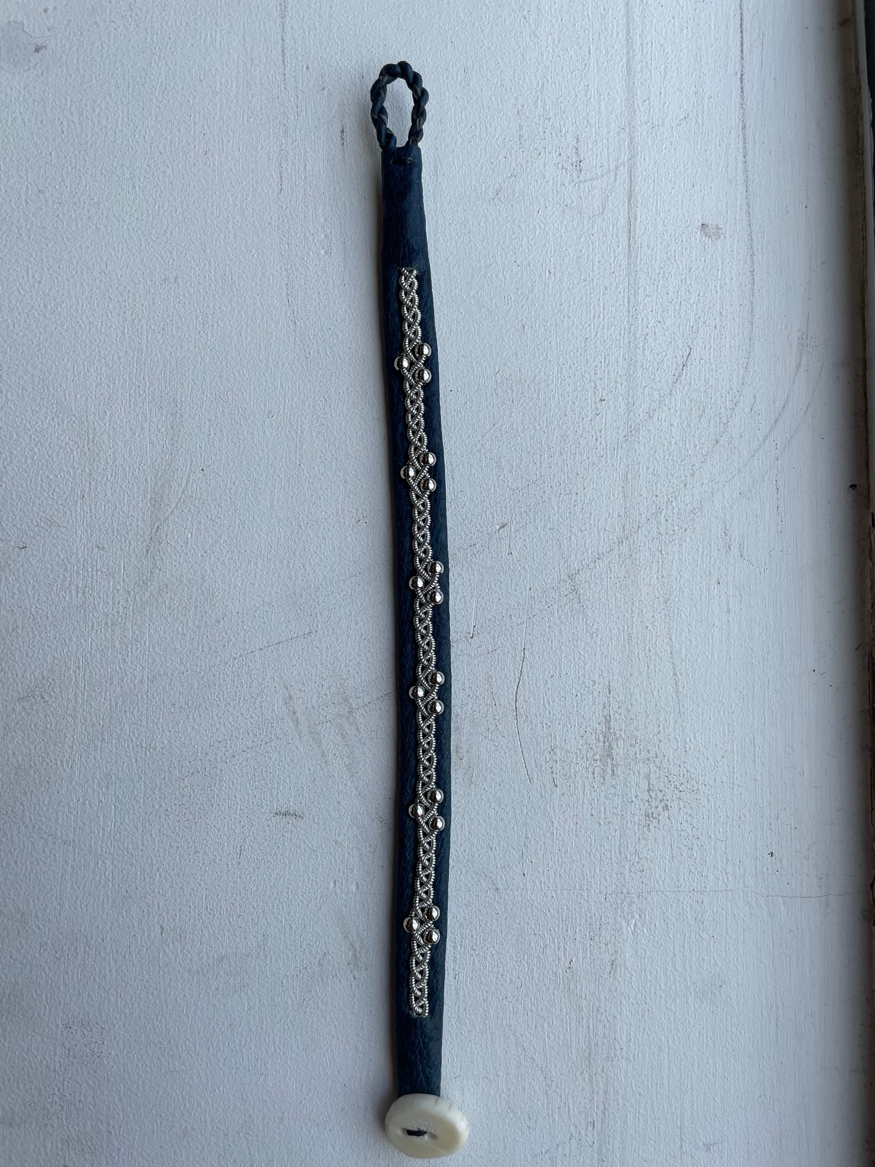 エゾシカ革で作ったサーミブレスレット 三つ編み ネイビー